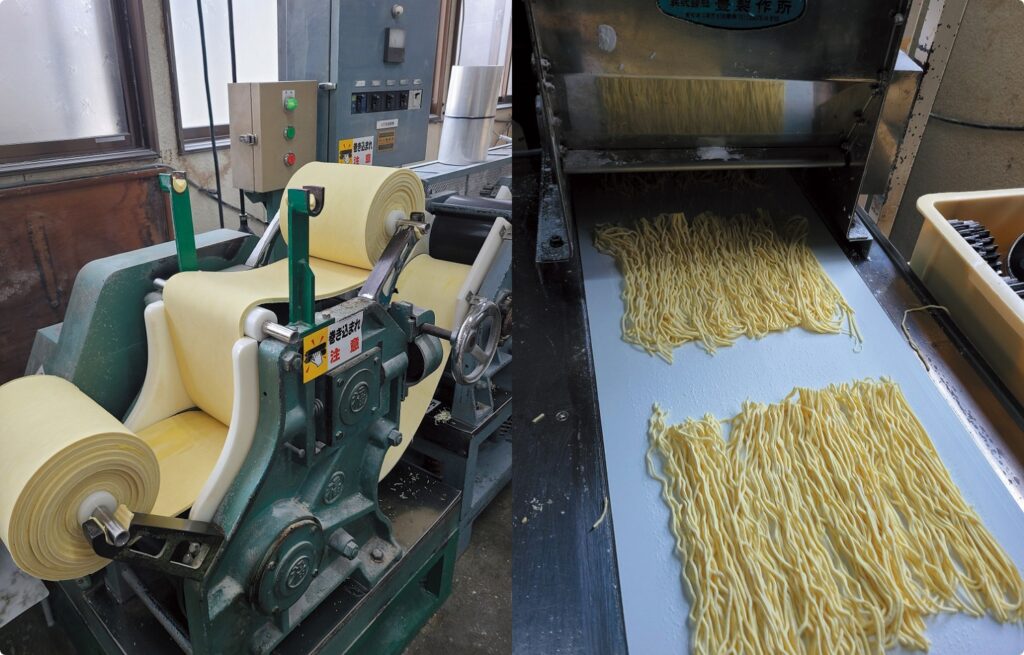 マルワ製麺の日常は、まだ夜が明けきらぬ午前3時から始まります。代表自らが釜を炊き、スタッフと共にその日に学校給食で供される麺を製造します。